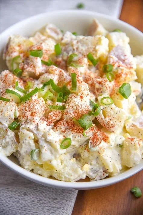 Creamy Potato Egg Salad Is A Perfect Side Dish. In This Recipe, Potatoes, Hard-Boiled Eggs, Celery, & Green Onions Are Combined W/ A Tangy Homemade Dressing That’s Simple & Delicious.