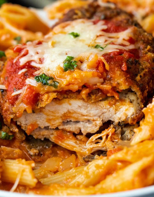 Savory & Delicious! This Authentic Homemade Italian Meal Has Crispy & Tender Chicken Baked W/ Fresh Mozzarella. Served W/ Penne & Marinara.